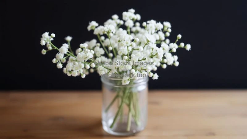 A bouquet of baby’s breath in a glass jar