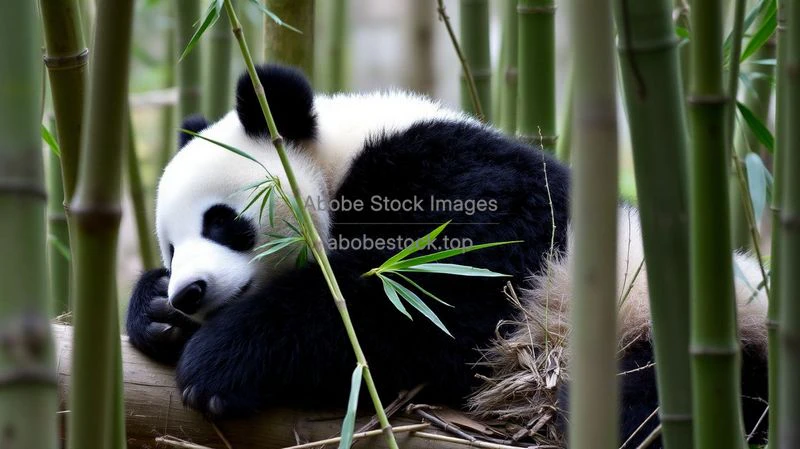 A panda resting peacefully in a bamboo forest