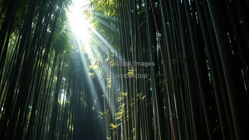 A serene bamboo grove with soft light