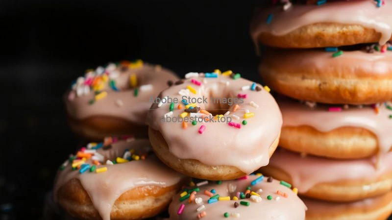 A stack of donuts covered in icing and sprinkles