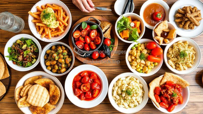 A table full of Mediterranean mezze dishes