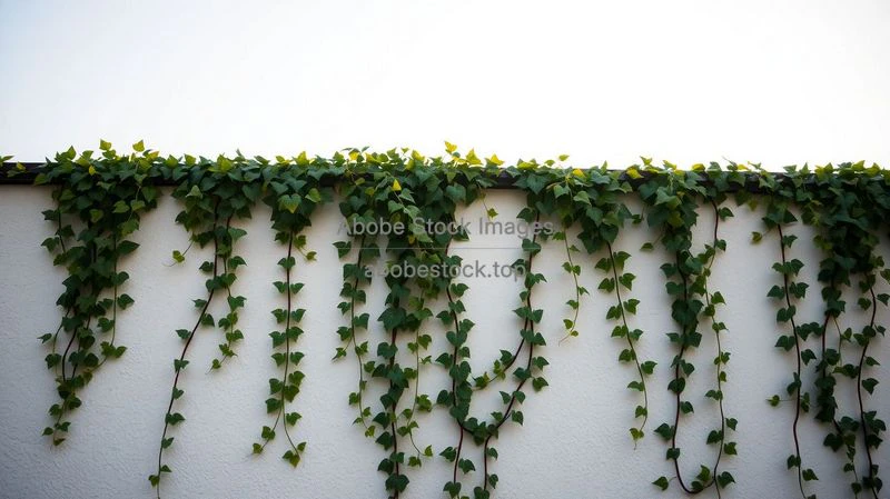 A wall of hanging ivy in soft afternoon light