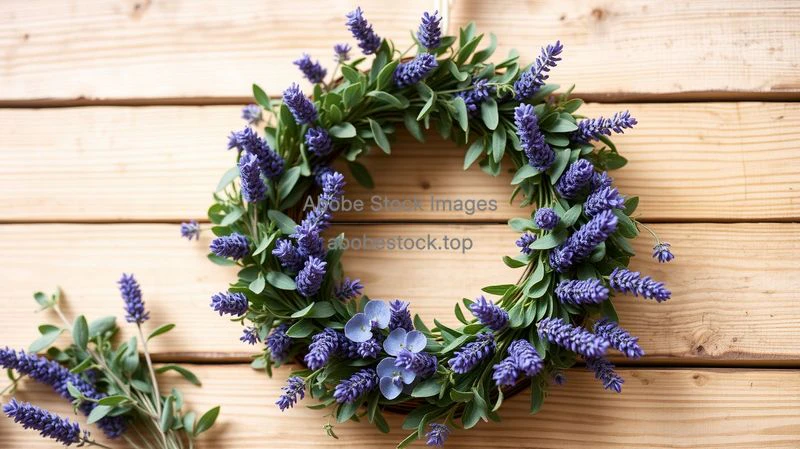 A wreath made of eucalyptus and lavender
