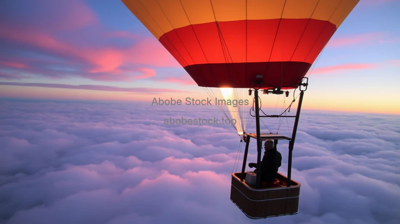 Balloon experiment measuring atmospheric pressure at altitude view from gondola above clouds