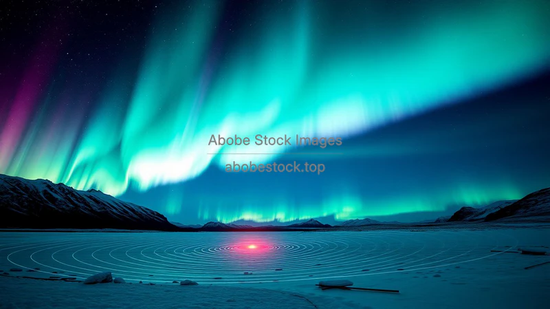 Beautiful aurora borealis explained with overlaid magnetic field lines scientific illustration style