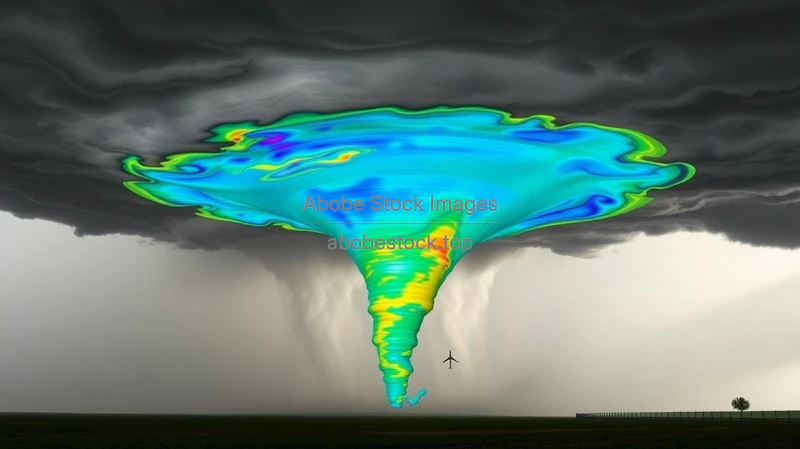 Detailed simulation of a tornado with velocity vectors and pressure maps meteorological physics