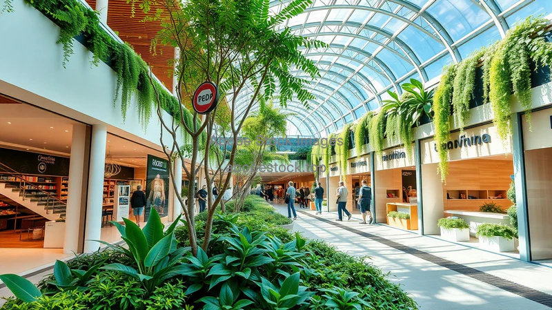 Eco friendly shopping center with greenery