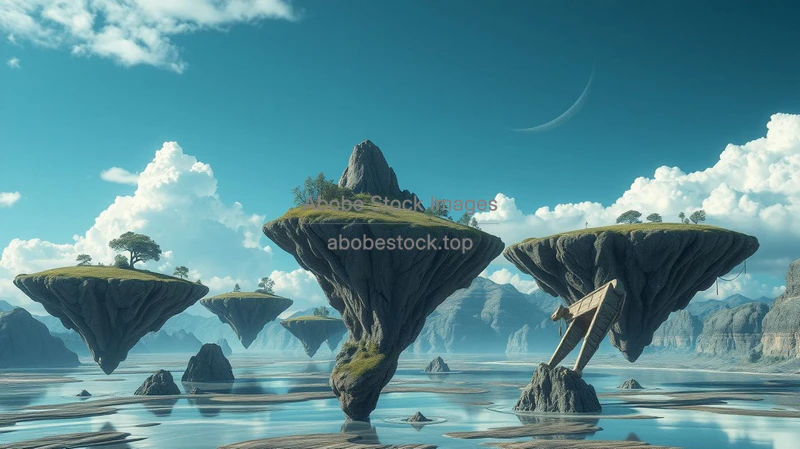 Tags: abstract physics, alien world, altered gravity, astral scenery, celestial landscape, conceptual design, cosmic landscape, digital art, dreamlike landscape, extraterrestrial terrain, fantastical scenery, fantasy scenery, floating islands, floating landmasses, futuristic environment, gravitational anomaly, gravity defying, imaginative art, imaginative scene, modified physics, mystical landscape, otherworldly scene, outer space, sci-fi illustration, science fiction art, space art, surreal environment, surreal landscape, surrealism, visionary artwork