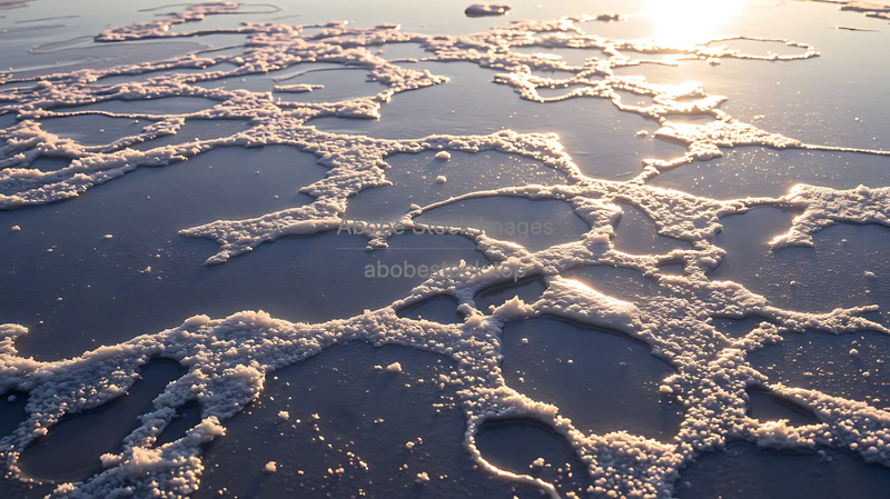 Frozen water surface glowing with morning light