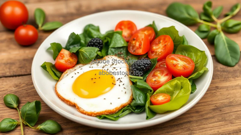 Healthy protein rich breakfast with eggs spinach and tomatoes