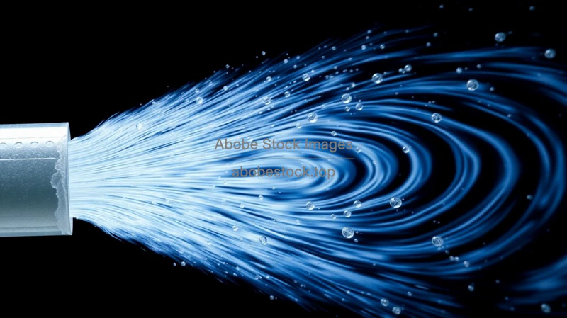 Jet of water exiting a nozzle forming laminar and turbulent regions sequentially educational image