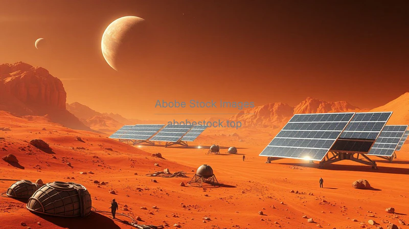 Mars colony using solar panels and physics based energy systems red planet landscape cinematic