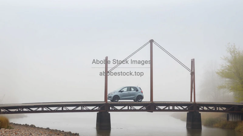Tags: adventure, atmospheric, countryside, crossing bridge, early morning light, fog, foggy morning, metal bridge, misty scene, mobility, nature, nostalgic, old bridge, outdoor, outdoor activity, peaceful, quiet, river, river crossing, rural landscape, scenic road, scenic view, small car, tranquil, transport, transportation, travel destination, travel photography, traveling, vintage bridge