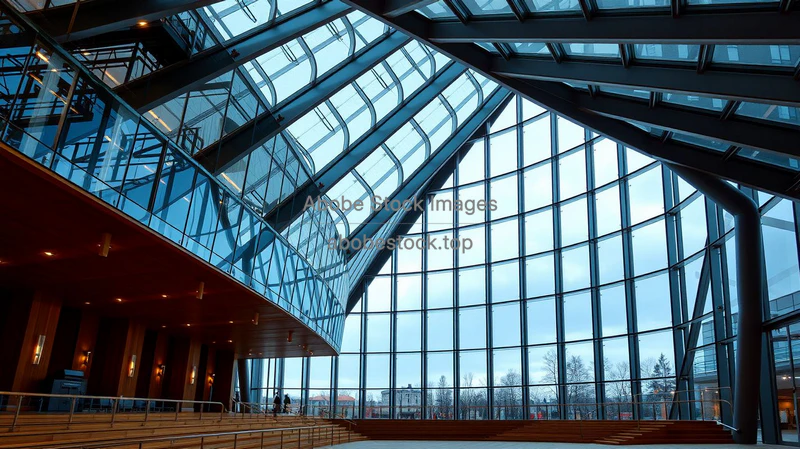 Steel and glass concert hall with dynamic lines