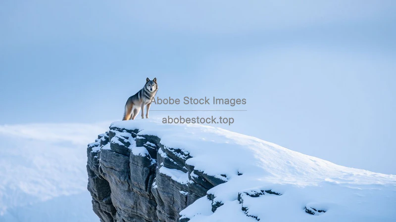 Wolf standing on a snowy cliff